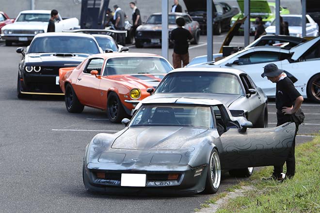 アメ車を販売するだけでなく、思いっきり走らせる楽しさをもっと味わって欲しい!そう考える東海カーズ・細井さんは、2025年もお客さんと一緒に82カップに参加した。