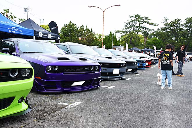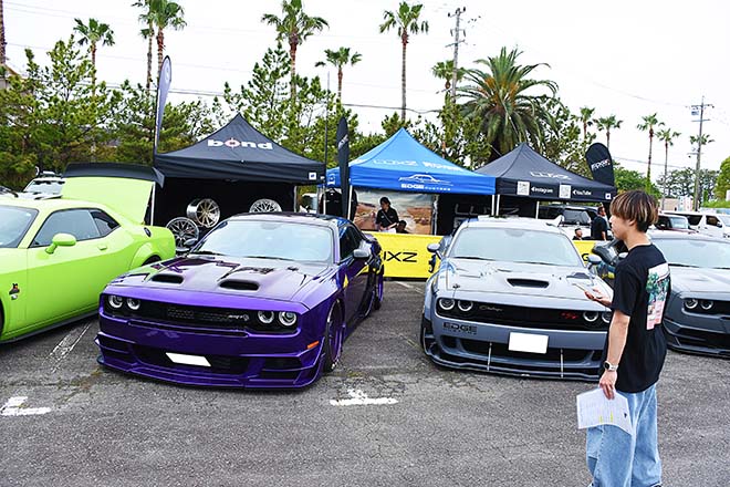 エントリー車両はマッスルに始まり、セダンにピックアップ、SUV、バンなどジャンルを問わず数多くのアメ車がズラリと会場に並んだ。中でも今回はマッスルとジープのエントリーが多かったのはラグジ&ワーコーポレーションの出展によるところが大きい。