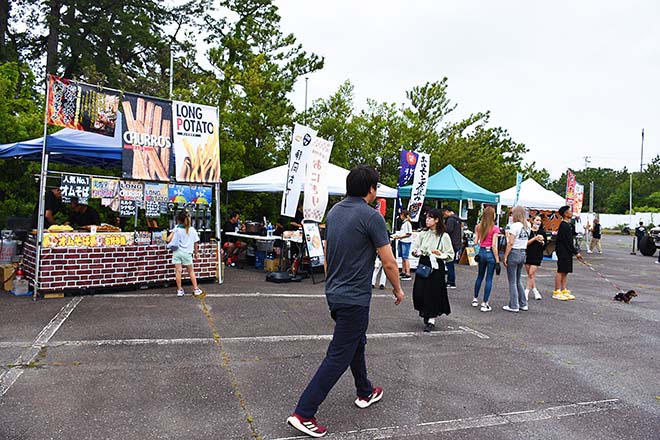 アメジャムの魅力はカーショーだけでなく、数多くの飲食店が参加するマルシェもポイント!今回はテレビ番組のオモウマい店でもお馴染みの「味のイサム」が出展。名物であるぶたからを求める人が後を絶たず。それ以外にも雑貨を販売する店もあって買い物を楽しむことができた。