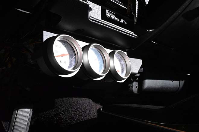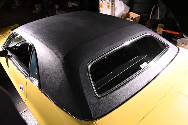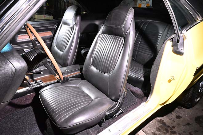 ステアリングやシート、ダッシュなどオリジナルの良さをグッドコンディションで保ちつつ、3連メーターやタコメーターの追加で油圧や水温計など必要不可欠な補器類を追加。内張や天井の状態も非常にクリーンなところも、前オーナーが大切に保管してきた証。