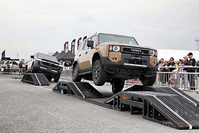 屋外会場で毎回開催されているのが、さなげアドベンチャーフィールドによる特設コースでの同乗試乗。LC300、LC250、LC70の3台を持ち込み、その走破性の高さなどをアピール。またランクルBASEブースでは、新旧のランクル70を展示すると同時に、ランドクルーザーのオフィシャルグッズを販売。Tシャツ、キーホルダー、アウトドアチェアなど、ランクルグッズが豊富に用意されていた。