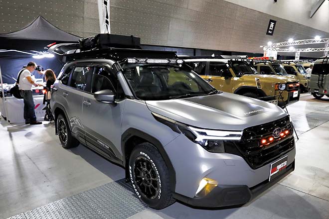 登場間もない新型フォレスターに、グリルマーカー、ルーフラック&ルーフランプ、ラゲッジのインナーラックを披露したIPF。これに加えてLC250とハイエースも展示した。