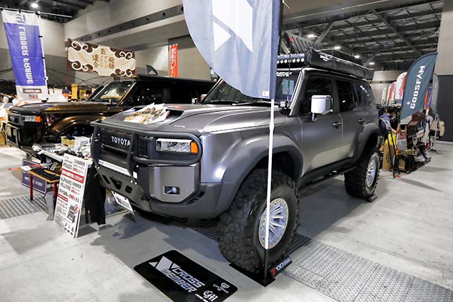 合法かつ高品質でスタイリッシュなカスタムパーツをリリースしているJAOSの人気は、FIELD STYLEでも健在。自社パーツを装着したランドクルーザー250、JB74ジムニーシエラ、キャラバンの3台を展示。特に高い注目を集めていたのはやはりLC250。一部のディーラーでも購入可能なJAOSパーツを装着したLC250 はやはりカッコ良さに加え、高い信頼性も大きな魅力となっている。