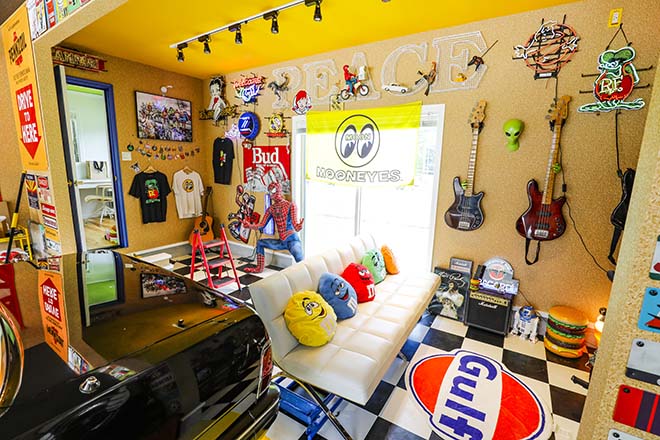 ガレージ内に飾っている雑貨コレクションは、アメリカン雑貨に興味が無かったものの住宅に合わせてコツコツ収集したもの。だからと言って、アメ車購入までは考えていないようだ。