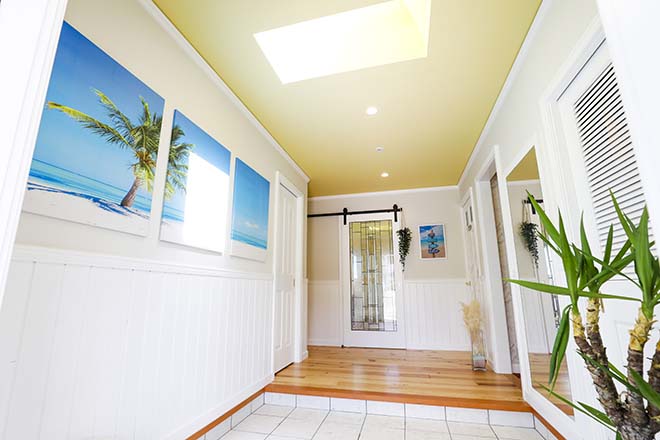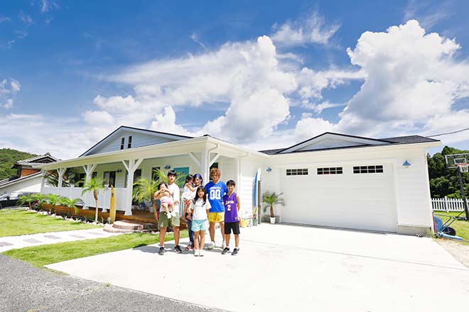 故郷に戻り家を建てることを提案した藤本さんに対し、二つ返事で承諾した奥様。「私も自然が豊富な田舎で産まれたので、全く抵抗はなかったです。むしろ子供たちのことを考えれば大賛成でした」。まず検討したのは、実家をリフォームして暮らすこと。だがそんな折、親戚から近くに広い土地(200坪)があることを教えられ、迷うことなく購入。次なる手順は建築するハウスメーカー探しなのだが、「こんな家に住みたい」という憧れを抱いていたのは奥様のほう。それが、藤本さんも全くイメージしていなかったアメリカンスタイルだ。実は奥様の父上が仕事や旅行で海外に行くことも多く、奥様自身もアメリカに短期留学した経験もある。それ故、アメリカ西海岸にある住宅デザインに住むことが夢だったのだ。藤本さんはその奥様の意見に「面白いかも」と賛同し、奥様が事前にインスタで調べていた、リアルアメリカンの住宅を建築デザインをするジェネラルアメリカンホームを教えられ、住宅を見学できるオープンハウスに行くことを決める。