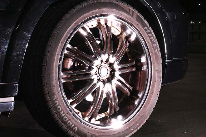 多少メッキのヤレを感じさせるグリルや購入当時から装着しているホイールはあえてそのまま。経年劣化を味として嗜むがゆえ、ありのままを楽しむ。
