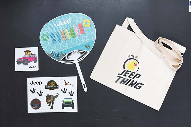 イベント参加者にはJeep Duckが描かれたサコッシュやステッカーなど、スペシャルなグッズが来場記念にプレゼントされた。ファンには堪らない豪華なラインナップだ。