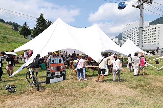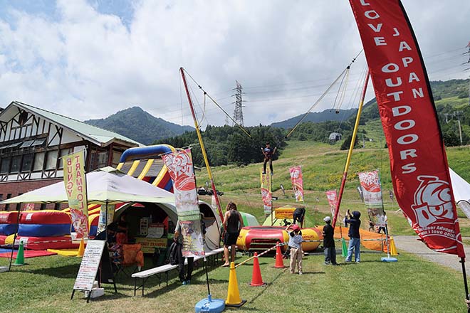 Feel EARTHエリアではトランポリンやスラックライン、最新のE-BIKE試乗会などが開催された。中でも人気だったのがハンモック。大人も子供もゆらゆらと揺れながら苗場高原の風をのんびりと楽しんでいた。さらにステージイベントとしてライブなども開催され、来場者だけでなくファンも訪れて大いに盛り上がっていた。