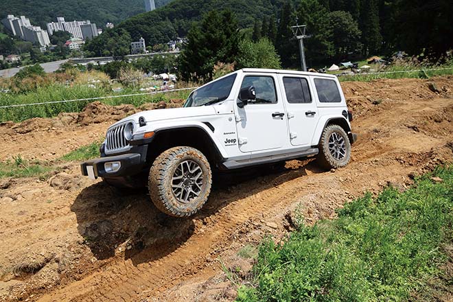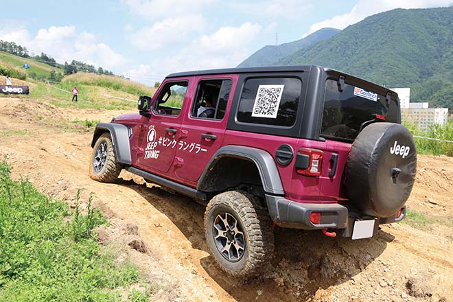 世界最高峰のオフロード走破性を持つラングラー。その悪路走破性をプロドライバーによる運転で体感できるのがオフロード体験会。ラングラーのタイヤよりもはるかに深い溝のモーグルや歩くことも難しい斜面に用意された特設コースを、ラングラーがいとも簡単に走破していく光景はJeepオーナーならずとも思わず見入ってしまう。驚くのは上位グレードのルビコンだけでなく、サハラでもそうしたコースをクリアしたことに多くの来場者が驚いていた。オーナーの皆さんもオフロード走行にも挑戦してみてはいかが?