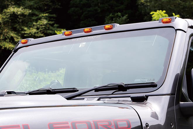 フロントウインドーの上にコンパクトなマーカーをセットできる、ルーフマーカーランプ。アメ車らしさをアピールしたいユーザーに、とくにオススメしたいアイテムだ。