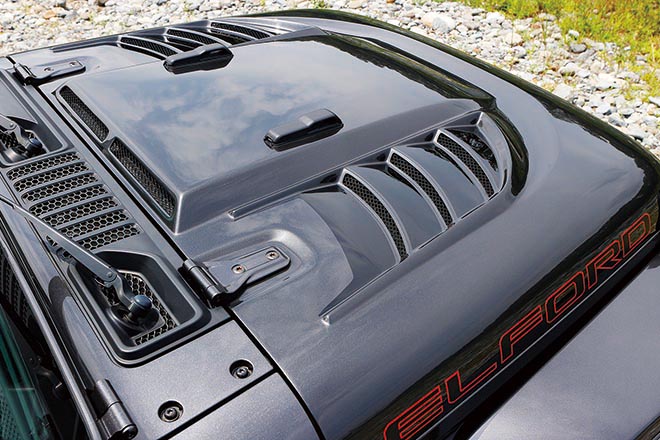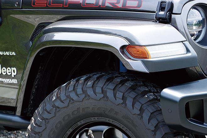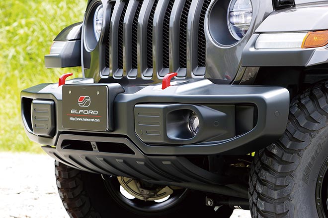 国産4WDのカスタマイズブランドという印象を持つ人が多いかも知れないが、エルフォードではジープ用のエクステリアパーツやマフラーも発売中。スタイリングだけでなく保安基準も満たすので、ディーラーからの信頼も厚い。