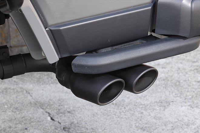 左右4本出しのレイアウトは共通だが、ウルトラパフォーマンスマフラーは、テールエンドの形状がチョイス可能。エンド部分のパーツは単品で購入できるので、仕様変更に合わせてエンド部分だけ変えることもできる。まさに自分の理想を追求できるマフラーだ。