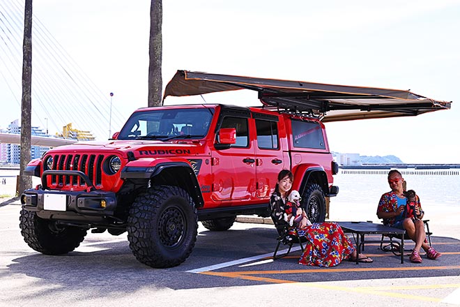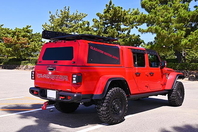 全体的なカラーバランスにも配慮しており、赤と黒の2色を基調としたコントラストも実に好印象。ワイルドでありつつも家族に優しい快適装備を併せ持った、まさに理想形のグラディエーターと言えるだろう。
