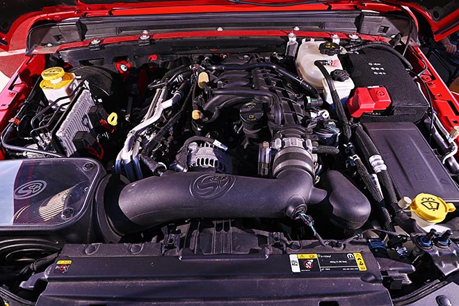 3.6ℓV6エンジンを搭載するグラディエーター。現車はS&Bエアインテークを装着しており、踏み込んだ時の吸気音はまるでマフラーを交換したかのような快感を覚える。燃費も向上するなど費用対効果抜群のアイテム!