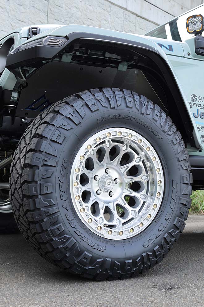 タイヤはRidge GRAPPLERの38インチ。17インチは日本でも徐々に浸透してきたが、こちらでは20インチを選択。街中でも映える足もとを魅せたいなら20インチという選択肢も十分にありだ。
