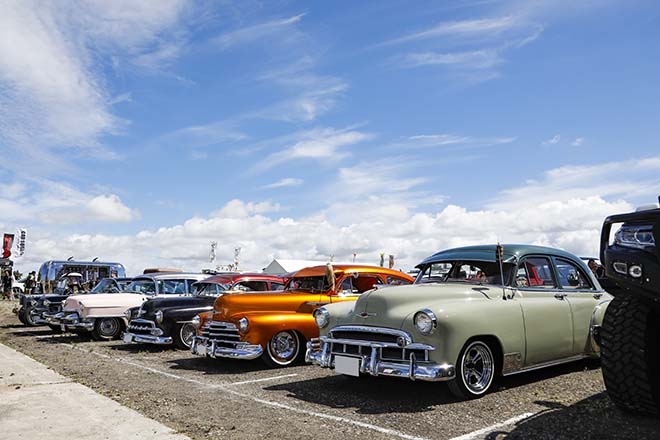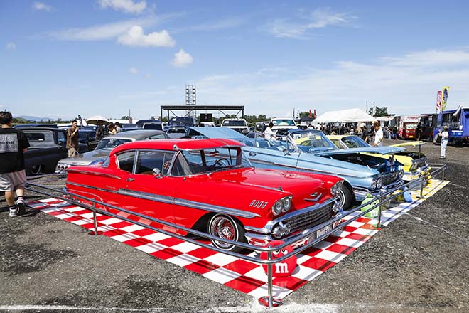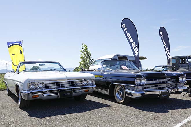 オールジャンルのカーショーであるため、エントリー車両は千差万別。アメ車ビンテージから、国産スラムド、ハイエースや、前夜祭にはデコトラまで登場。アメ車に限って言えばビンテージ色が強く、他にSUVトラックのハイリフトが目立った印象。さらに駐車場にはチャレンジャーなどマッスルカーの姿も多く、北海道でもアメ車ファンは健在だと感じられた。