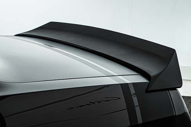 シンプルなリアスポイラーもLUXZのオリジナル。奇抜なウイング形状は採用せず、旧車的な雰囲気を演出している。