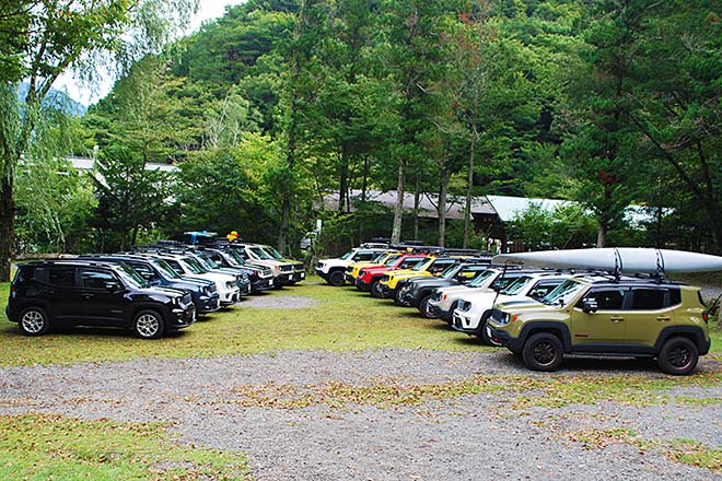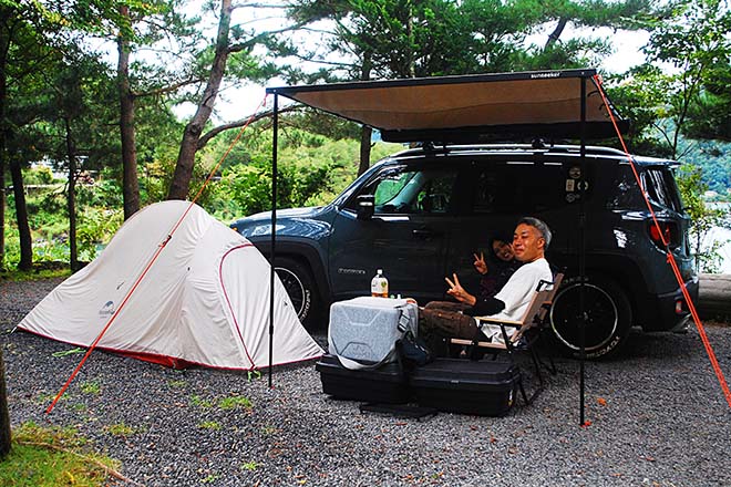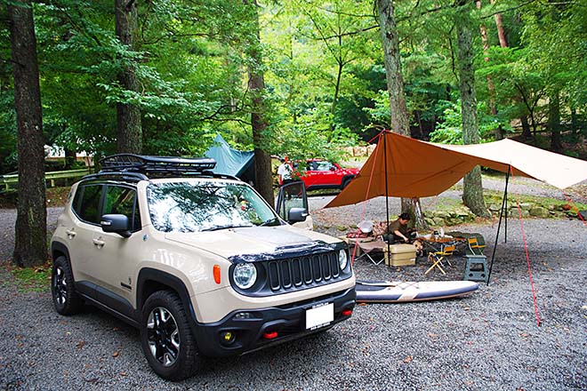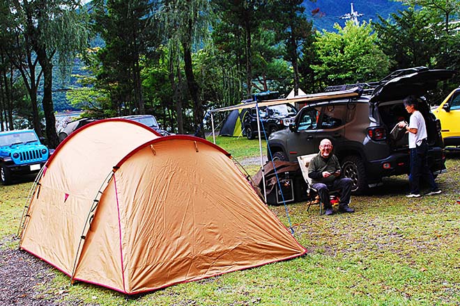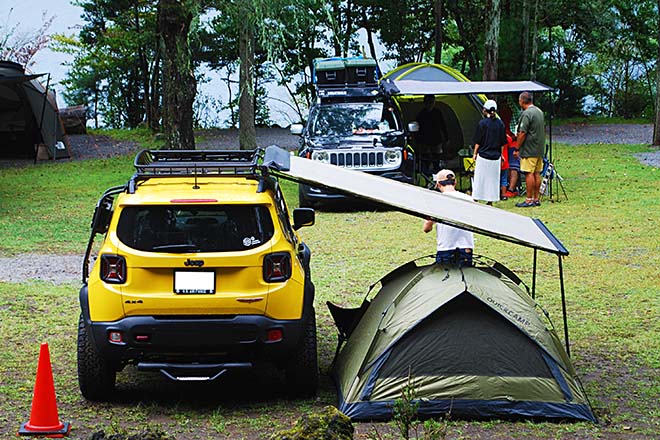 湖畔にある林間サイトにはカラフルなテントとレネゲードが整然と並び、写真映え抜群の光景に。アウトドアとクルマの融合は、このイベントならではの楽しみ方だ。