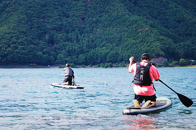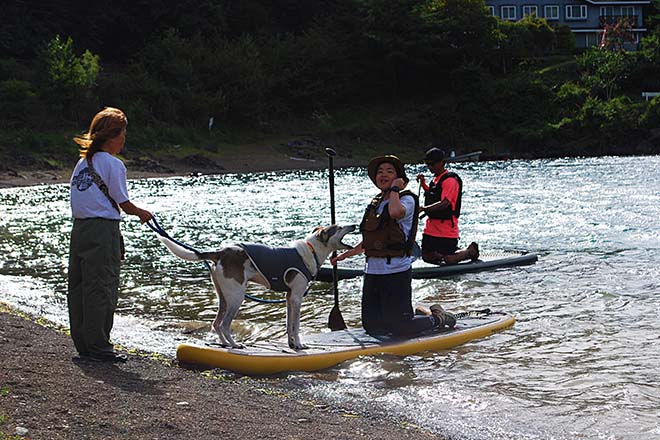 西湖でのSUPは今回の大きなハイライト。初挑戦の人もベテランも一緒に楽しみ、愛犬と一緒に水辺で遊ぶ姿も。アウトドアらしい開放感と仲間の笑顔があふれる特別な時間となった。