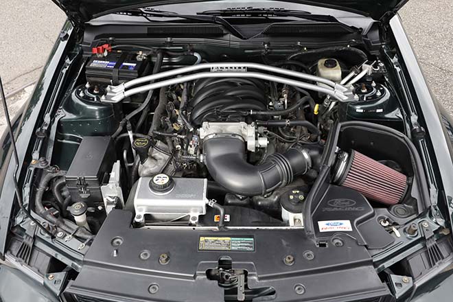 1968年に公開された映画「ブリット」に登場する、1968年型フォード・マスタング GT390ファストバックをモチーフにした特別限定モデルがマスタング・ブリット。50周年を記念した2019~2020年モデルが有名だが、2001、2008~2009年(7700台限定)にも特別仕様モデルとして発売された。道谷さんのブリットは08年型で、劇中車と同じくハイランドグリーンのボディカラー、専用フロントグリル、強化サスペンション、吸気チューニングなどが施される。