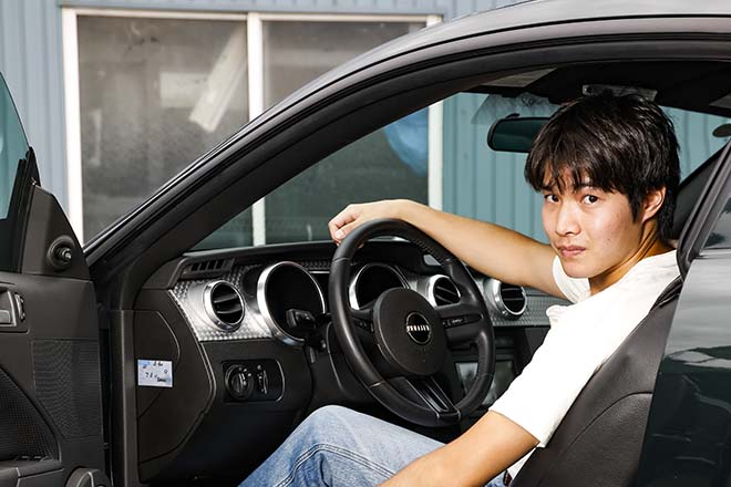 クルマに興味を覚えてきたのが、手狭になってきた軽から国産セダンに乗り換えた頃。「何となく広いクルマに乗ろうとセダンにしたんですけど、思った以上に快適で、運転するのが楽しくなってきたんです」。ハンドルを握ることに楽しみを覚えた道谷さんは、「もっと楽しいクルマはあるのかな?」と様々なクルマに興味を持つようになり、過去に視聴したカーアクション映画の記憶を蘇らせる。「トランスポーターの欧州車も良かったんですけど、一番興味が湧いたのがトランスフォーマーのカマロ…ではなく、悪役のマスタングでした」。