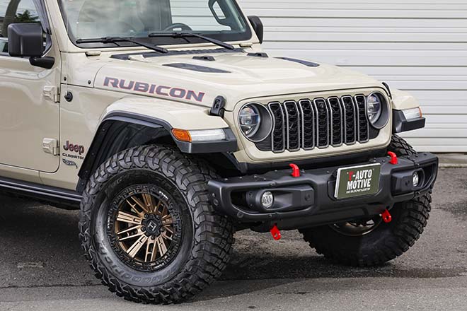 今回販売車で注目したのは、20年型ジープ・グラディエーター。ホイールは、Tオートモーティブが北海道で唯一の特約店であるホスタイルのH129・MOJAVE・17×9.0J。他にWHAコーポレーションのアルミバンパー、24ルックグリル、フェンダーフレアを追加する。もしゴリゴリ系がお好みならば、国内はもちろん、本国との太いパイプもあることから直輸入することも可能だ。