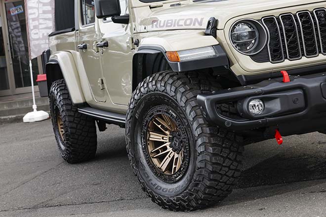 「ノーマルのままで極力販売しない」のがT オートモーティブの方針であり、グラディエーターも違いのあるカスタムを施す。装着するホイールは、アメリカでも高い人気を誇るオフロードホイールの「ホスタイル・H129 MOJAVE(17 × 9.0J)」。同ショップは北海道で唯一のホスタイル販売特約店であり、メーカー直のサポートも受けられるなど多くのメリットを持つ。