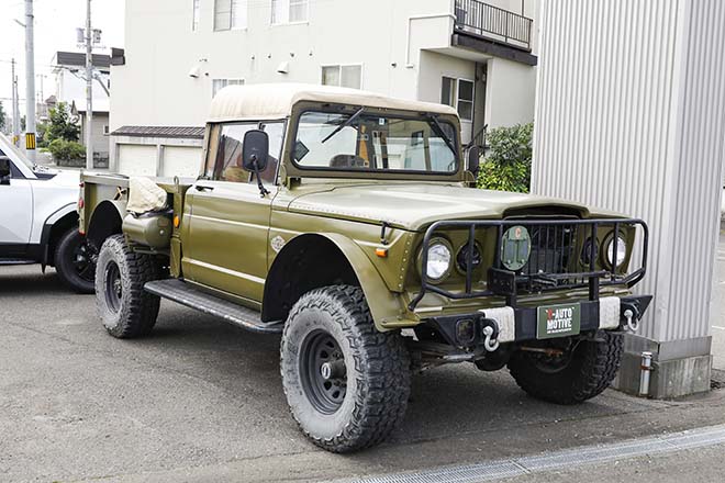 そして今回、グラディエーターに注目した理由はカスタムだけにあらず、Tオートモーティブにグラディエーターの祖先であるSJ型の軍用版67年型カイザージープ・M715が販売されているからだ。この2台を並べての撮影はアメマガ史上初。だが、当日になってM715はご機嫌斜め。前日までは普通に動いていたそうだが…。ともあれ、こんな激レアモデルを日本に持ち込むルートがあることに驚く。聞けば、ドバイに住む富豪のミリタリーマニアが保管していた車両を、森田氏が知人を介して購入したという。メンテナンスは外注にはなるが、豊富な経験を持つ整備士がいるため安心したい。ミリタリーマニアのみならず、オールドジープファンは絶対注目なのは間違いない。