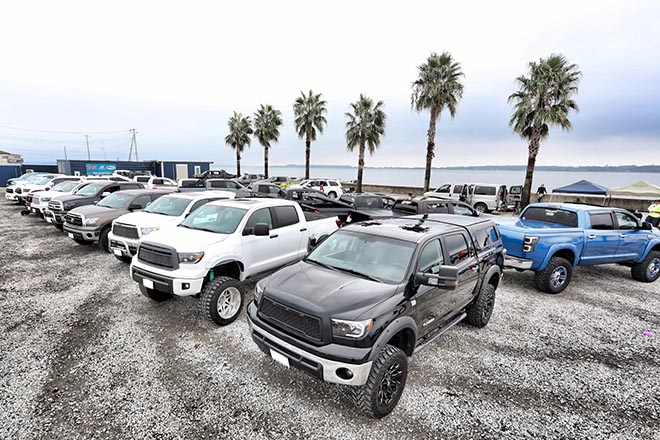 茨城県稲敷郡のベイサイド、稲フォルニアイベントスペースで10月12日(日)に開催されたのが「US TOYOTA ONLY MEETING」。これまでに2回、タンドラとセコイアのみのミーティングを実施しており、今回はその発展系としてより多くのUS TOYOTAオーナーが集うと同時に、左ハンドルも参加条件としたイベントとなった。タンドラとセコイアを筆頭しに、タコマ、4ランナー、FJクルーザー、シエナなどが75台以上も集結。