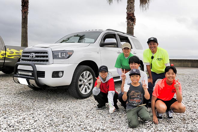 6人家族が快適に移動でき、かつ普通のミニバンとは違うかっこいいクルマとしてイトウファミリーの白羽の矢が立ったのが、USトヨタのフルサイズSUVであるセコイアだったそう。しかもアメ車に乗りたいという奥様の意見を反映した結果とのこと。信頼性が非常に高くトラブルフリーだそうだ。