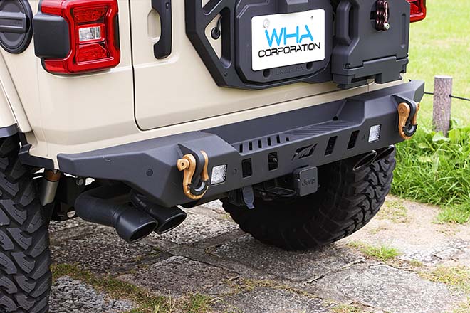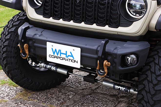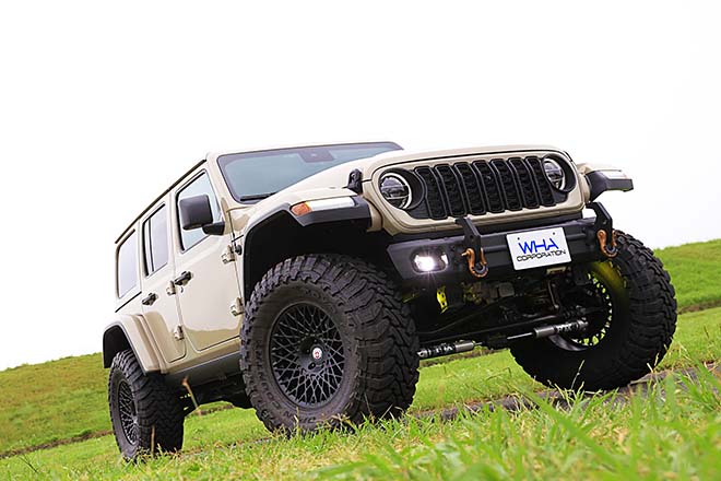 WHAコーポレーションの最大の魅力は、希少なアメリカモデルのラングラーを手に入れられるだけでなく、そのまま好みのスタイルにアレンジができること。前述したようにWHAコーポレーションでは、自社のエクステリアパーツやスープアップアイテムも発売しているが、もちろんMOPARのオプションパーツや各アフターパーツメーカーのカスタマイズパーツも購入可能。