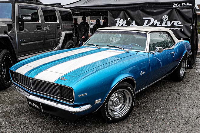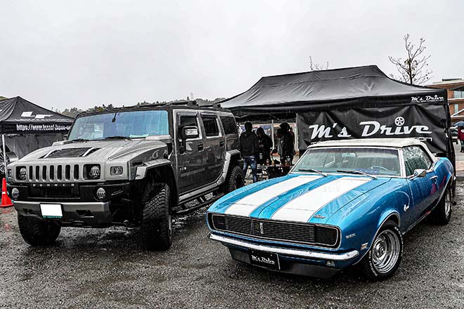 宮城県で、アメ車を始めとする輸入車を積極的に取り扱うM'S DRIVE。今回のイベントにはH2とカマロを展示。車両販売だけでなく、整備や鈑金塗装も自社で対応可能。もちろん修理だけでなく、カスタムペイントにも応じてくれるので、まずは気軽に相談してみよう。