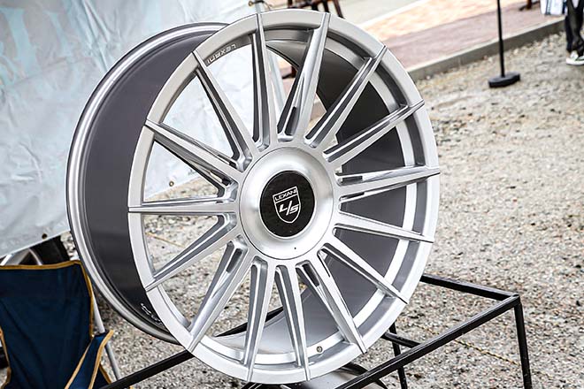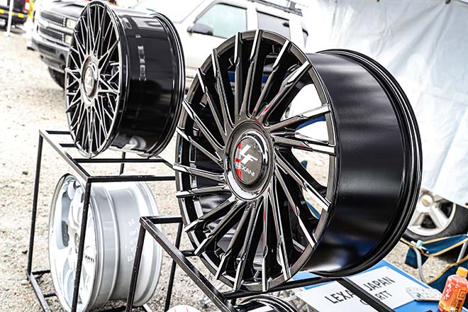 20インチどころか、26インチや28インチもラインナップするラグジュアリーホイールのLEXANI。今回のイベントにはスポーティなフィンタイプのモデルを多数出展。ブラックやポリッシュモデルだけでなく、ワンオフのカラードモデルも製作可能なので、唯一無二もカスタムが可能。