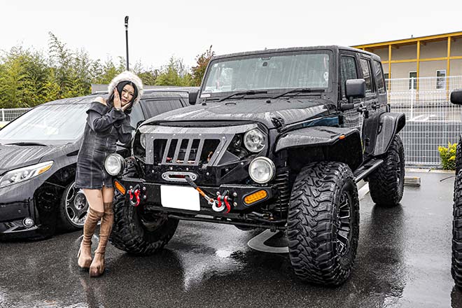住んでいる地域が大雨冠水した際、周りのクルマが身動きが取れない中、愛車ラングラーは無双状態だったという。迫力のワンオフフロントグリル、ラフカンの4インチリフト、37サイズタイヤ、BATTLEZの2本出しマフラーは伊達じゃない!