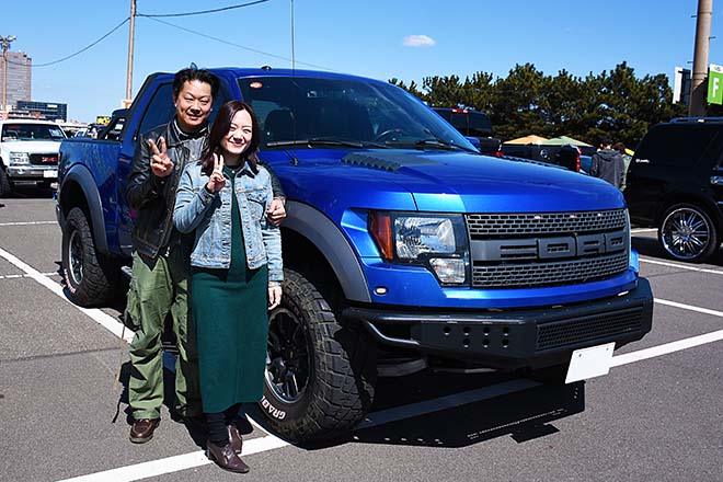 「家族と愛車でイベントに参加して、想い出作りの場にしたかったので参加しました」というは、2010年型F-150ラプターを愛車にする池田さん。どうでしょう、楽しい想い出はできたでしょうか?愛車のポイントは、バイク積載するための鳥居を自作したこと。