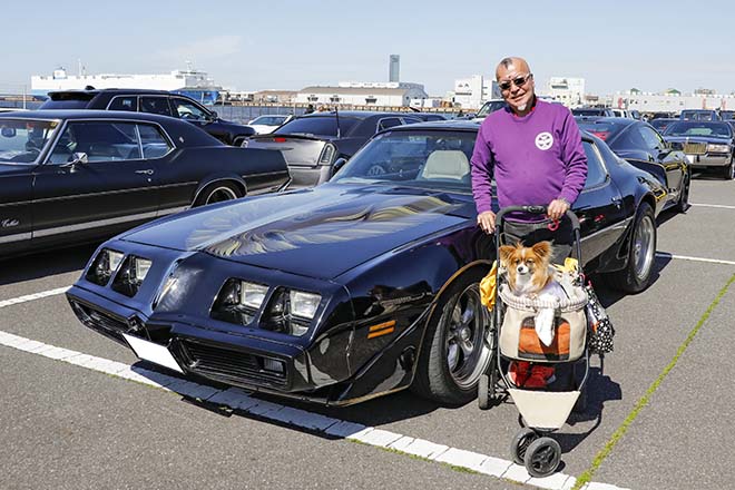 ちょい悪のオーナーの風貌、そして第二世代後期のファイヤーバードトランザムと、少々近寄りがたい雰囲気だけど、愛犬のパピヨンを可愛がる姿はとっても微笑ましい。トランザムはコルベットのL98エンジンに換装するなど、劇的に進化しているのだ。