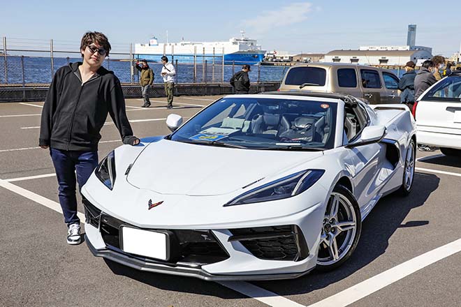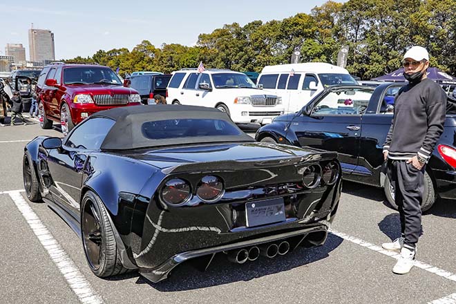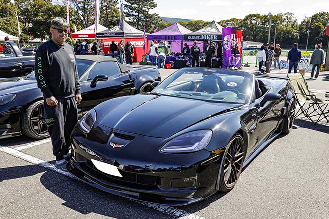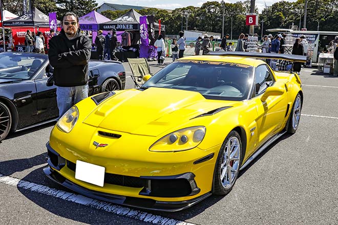 「クルマは厳ついのに対し、オーナーはジャニーズばりに甘いマスク」と、この日のために考えてきたコメントを用意(笑)甘いマスクはさておき、そのC6コルベットはワイドボディ化され、埼玉のHPPでECUチューンを施しワンオフマフラーなどで武装。