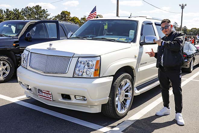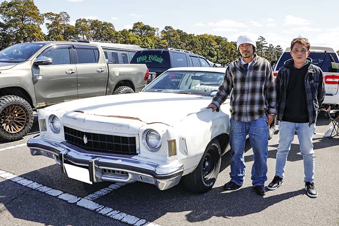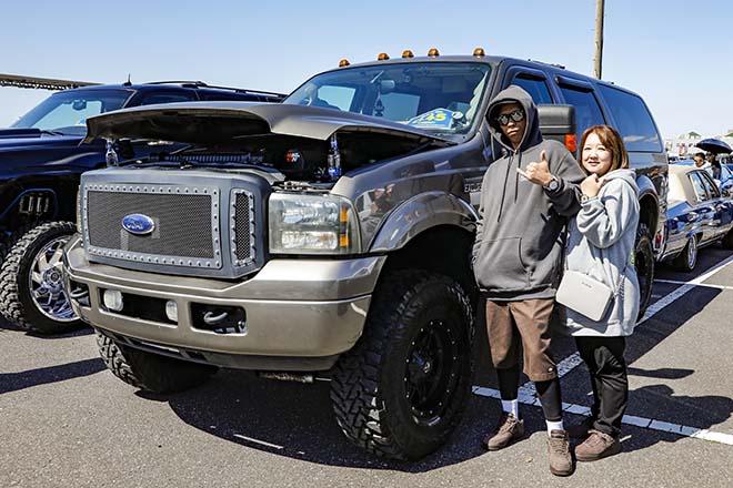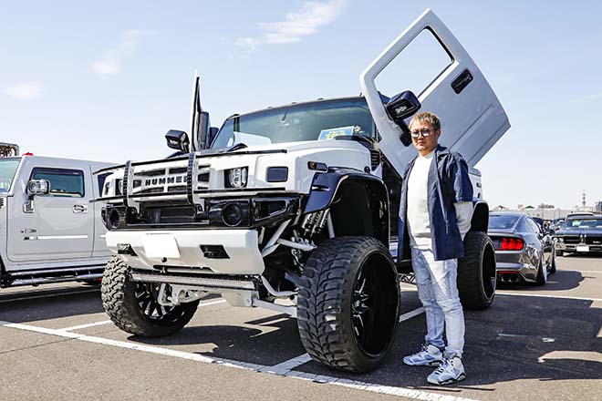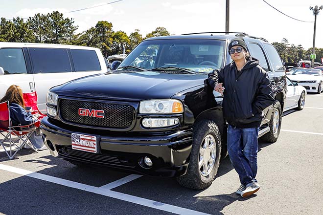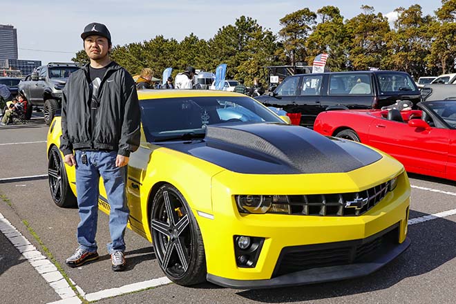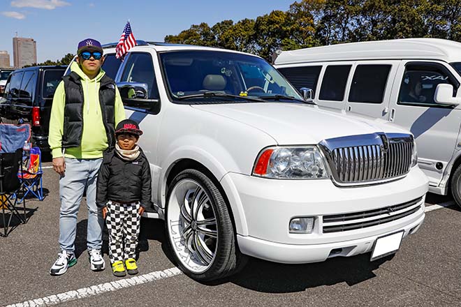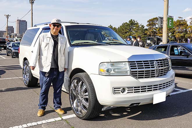 友人たちが乗るアメ車に触発され、1年前にナビゲーターでアメ車デビュー。しかもロングという希少モデル。「オーナーに合わせてより重量級を選びました」とか。クルマのイベント自体に来るのが初めてで、「メチャクチャ楽しい」と満面の笑み!