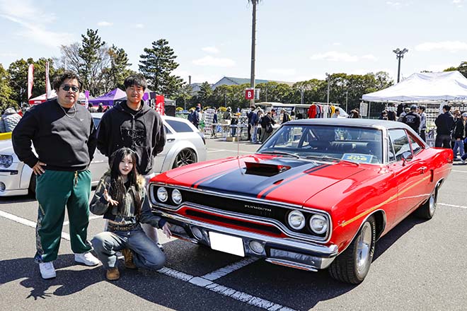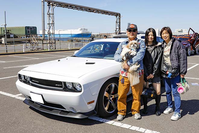 家族と一緒にドライブがてら初参加してくれた、チョコ太郎さんファミリー。アメリカン雑貨が大好きなようで、本日の一番の目当ては雑貨を販売する出展ブース。昨年購入した愛車チャレンジャーは完全ノーマルで、参加に不安を覚えたようだが全然問題ないですよ!