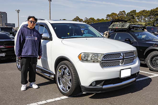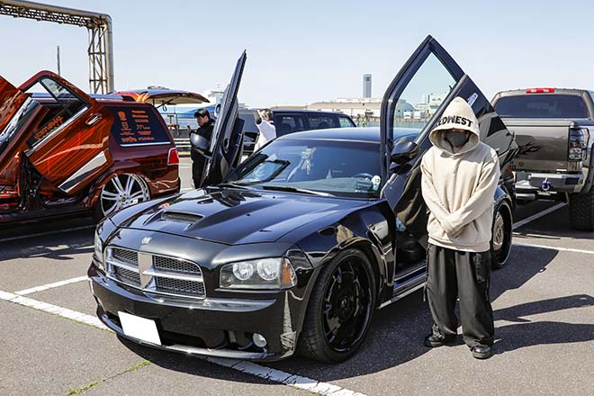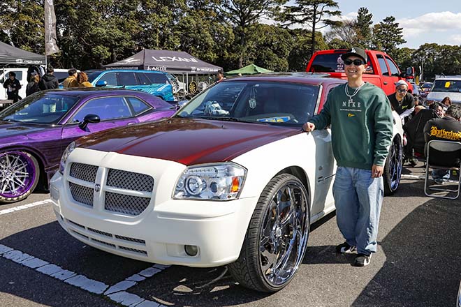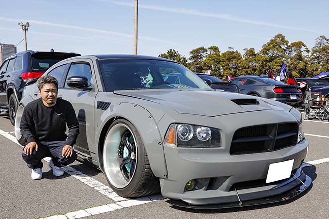 アメ車オーナーとの繋がりを作るため、2025年初参加したタカハルさん。その際はノーマルだったが、イベント参加をきっかけに仲間が増えて、その仲間の影響もあってチャージャーはアメパトの覆面仕様にカスタム。イベントをきっかけに友人が増えるのは本当多いですね~。