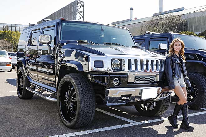 現在20才( 秘密だったらごめんなさい)ながらH2オーナーという、みちゃさん。大口径ジオバンナホイールもポイントだが、「可愛い」インテリアが一番のお気に入りのようだ。ネイリストらしく、しっかりネイルを見せるようにポーズするのは流石です!