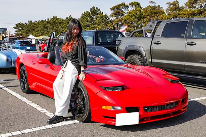 アメ車歴は36年。これまで所有した台数は16台。トランザムはこれが3台目。現在他にセビルとジープを所有。これだけでも凄いし羨ましいんだけど、お隣に寄り添う女性もまた美しくて、トランザムがメチャクチャお似合い。是非1台プレゼントしませんか?
