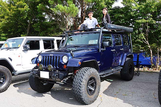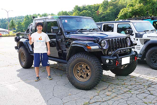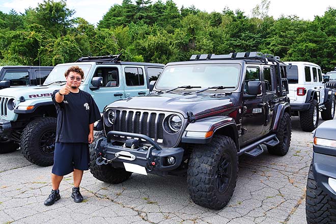神戸から来てくれた足立さん。コツコツとカスタムをしているそうだが、中でもお気に入りはラギッドリッジのフロントバンパー。タイヤの見え方が最高!