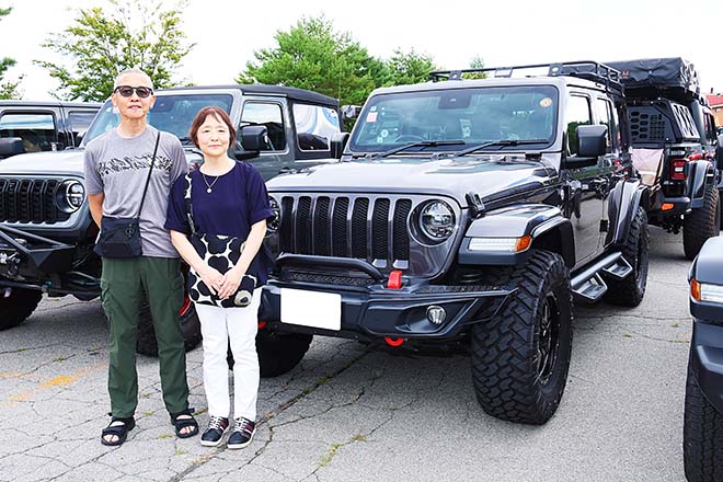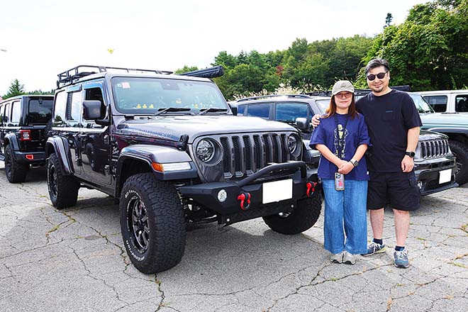 購入してまだ3カ月というホヤホヤジーパーのトンちゃんご夫妻。カスタムパーツが少ないことが悩みだそうだが、この日も先輩ジーパーに話を聞いていた。