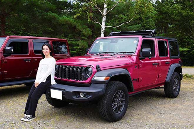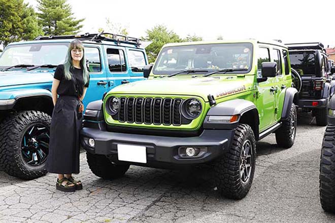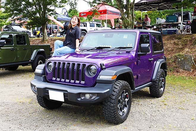 色もクルマも他人と被らないのが好きだという、関西から来てくれたキュートなこのかさん。レネゲードから乗り換えたというラングラーはショート。愛車のお気に入りポイントは「短いところ」。アクティブな雰囲気とクルマがお似合いです! 次はホイールですね(笑)。