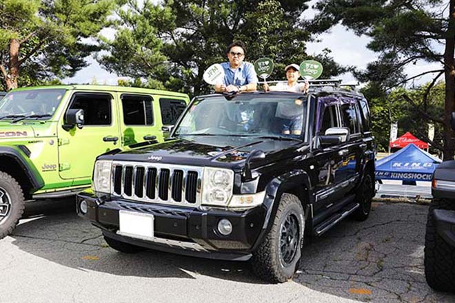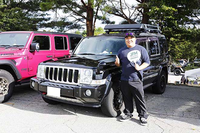 父が乗っていたXJチェロキーに憧れてジープデビュー。同型のコマンダーオーナーを探し求めて参加。ペーパーで磨いて復活したヘッドライトに注目!