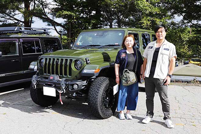 旦那様の趣味のクルマのように見えるけど、このTJは奥様が長年夢見て購入した奥様の愛車。旦那様からアドバイスを受けつつカスタムも積極的。