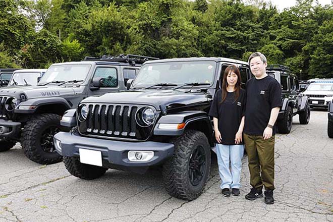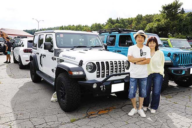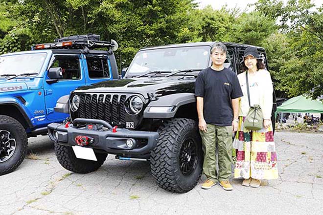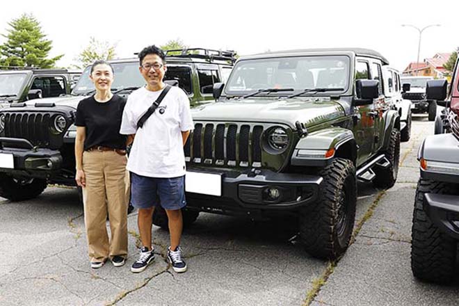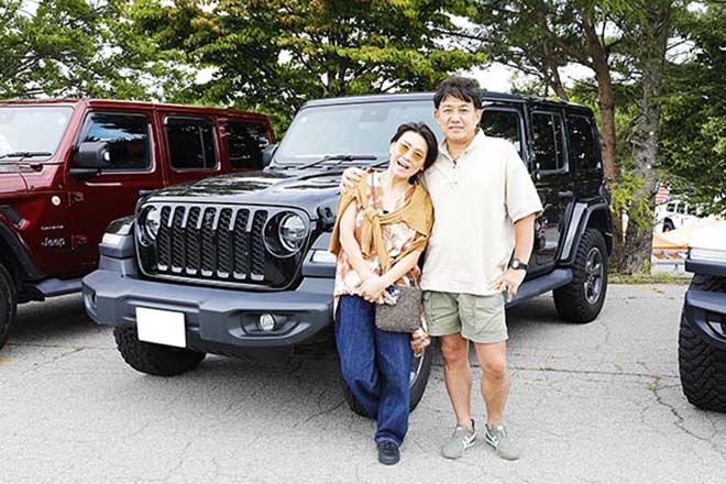 これまで色んなクルマを所有してきたなかで、初めて奥様から「このクルマが欲しい」と言われたのがラングラー。夫婦でのドライブも日課のようです~。
