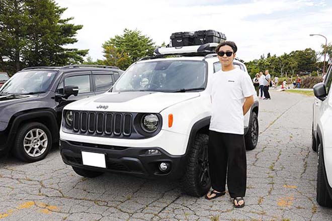 初のクルマとして9カ月前に購入したレネゲード。キャンプ道具が満載なように、レジャーで大活躍中。カスタムも積極的で、JAOSのサスなどを装着。